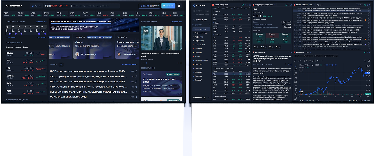 - Единое пространство для анализа компании: цена, отчетность, события, макро, состояние отрасли